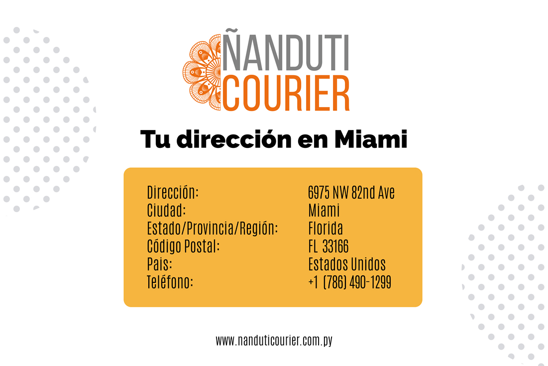 Nosotros te asignamos una dirección postal en el estado de Florida, Estados Unidos, donde podrás enviar todas tus compras, ropas, celulares, accesorios, calzados, repuestos o lo que desees comprar y te lo traemos a Paraguay.